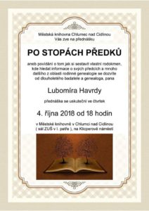 Aneb povídání o tom jak si sestavit vlastní rodokmen, kde hledat informace o svých předcích a mnoho dalšího z oblasti rodinné genealogie se dozvíte od dlouholetého badatele a genealoga Lubomíra Havrdy